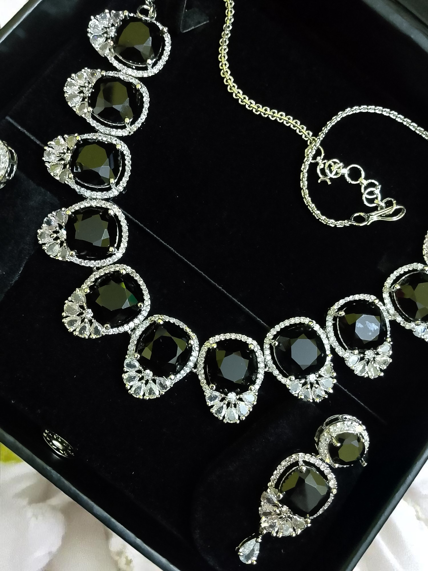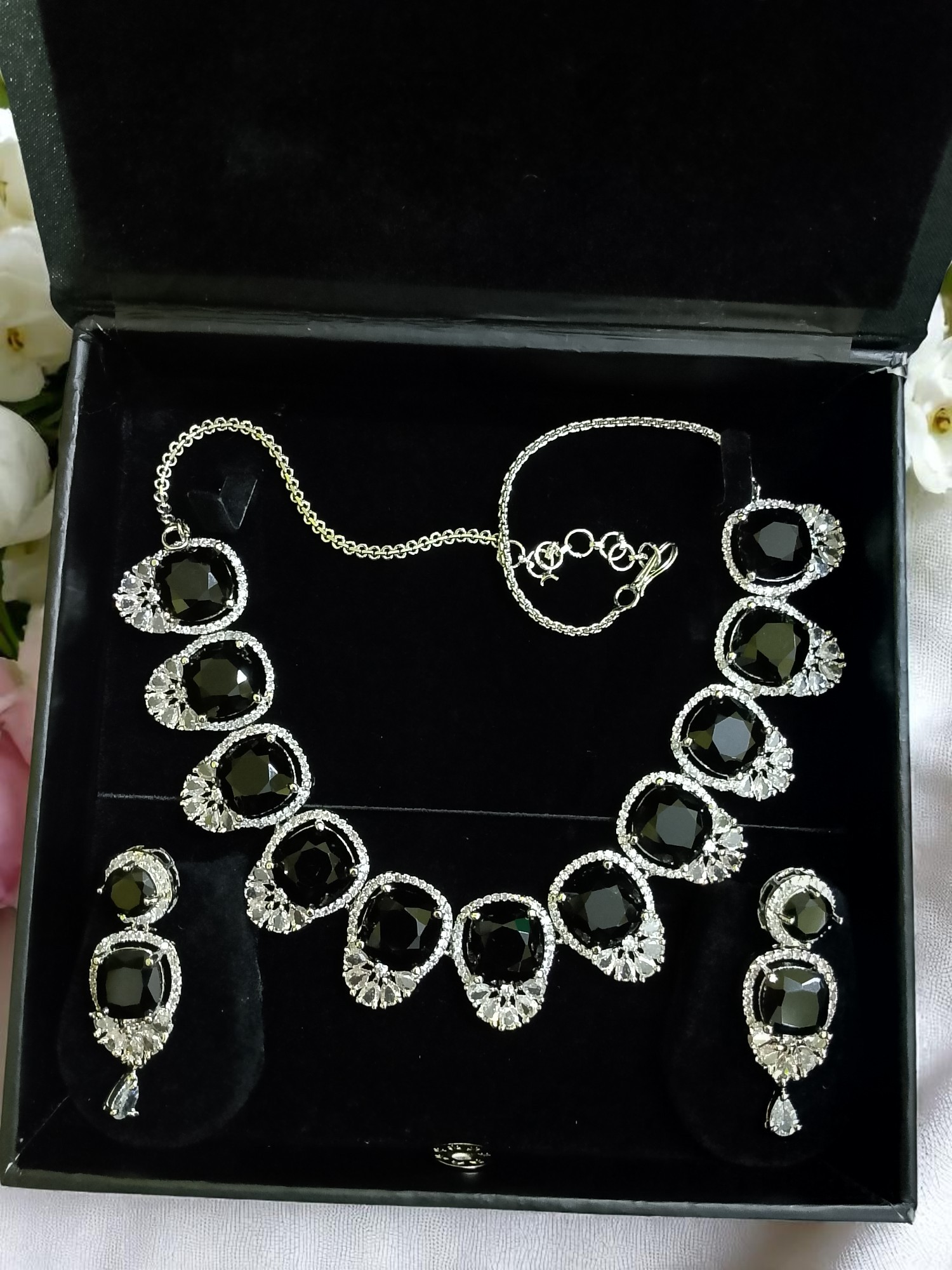 Black Ad Stone Necklace With Earring Pair