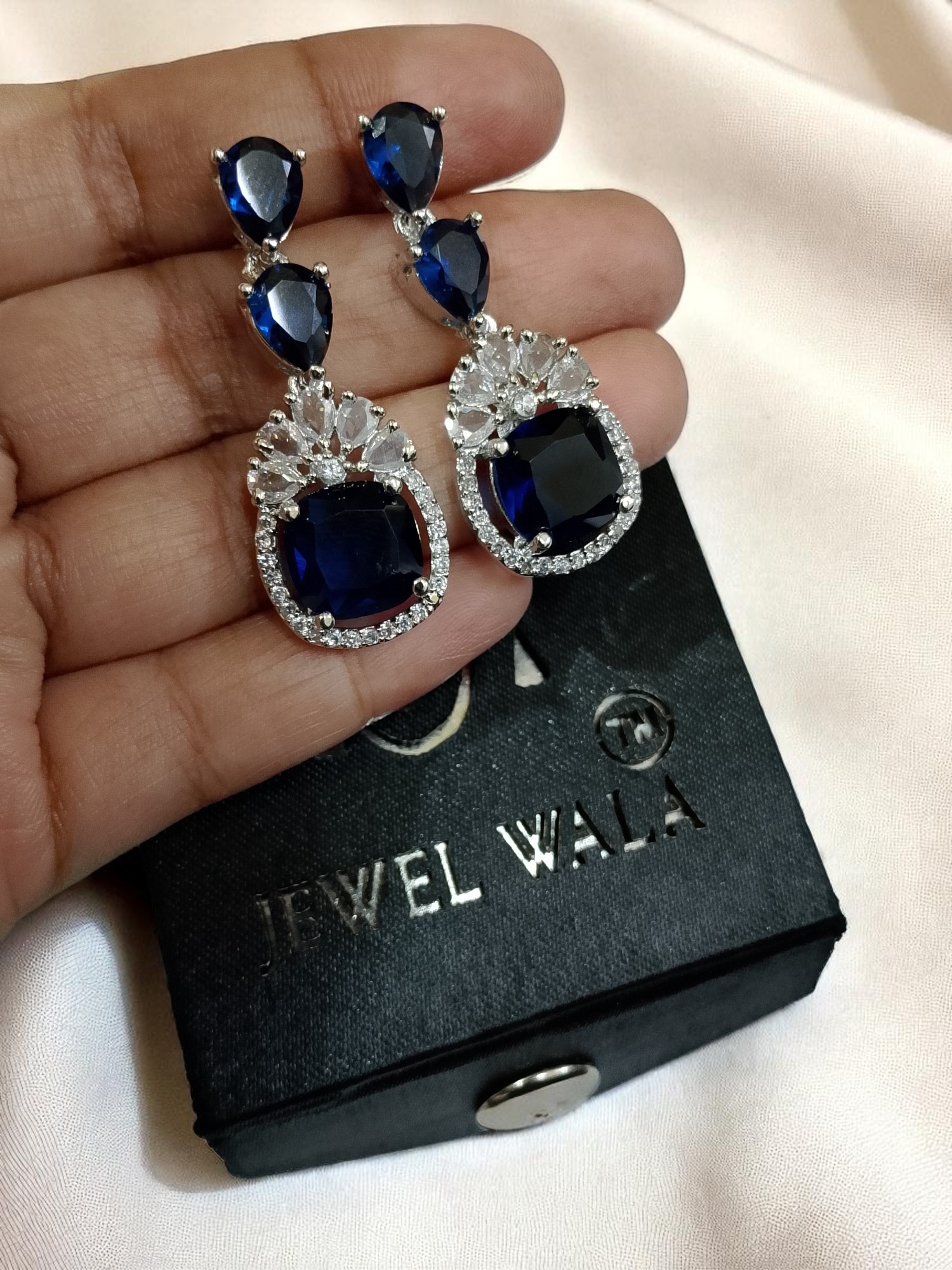 Blue Classic Teardrop American Diamond Earrings