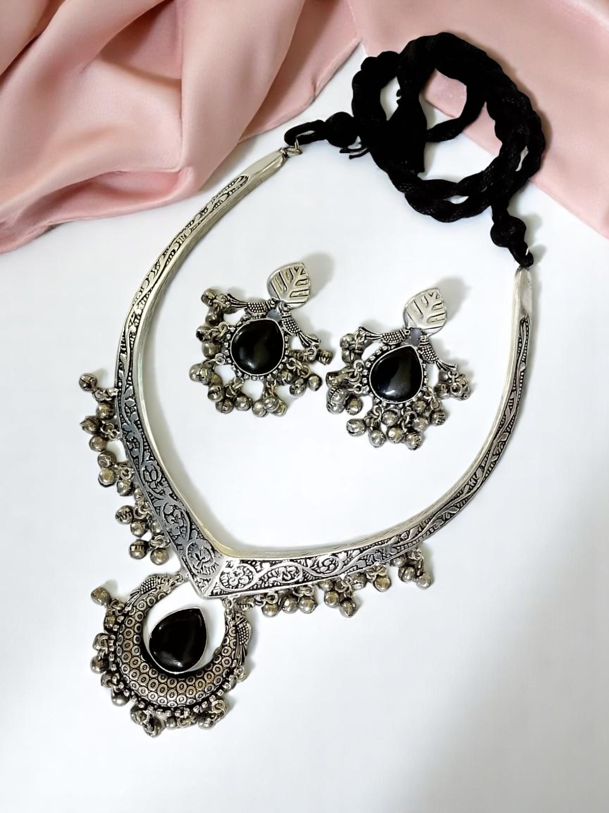 Design: Traditional hasuli (rigid choker-style necklace) with detailed engraving and antique finish