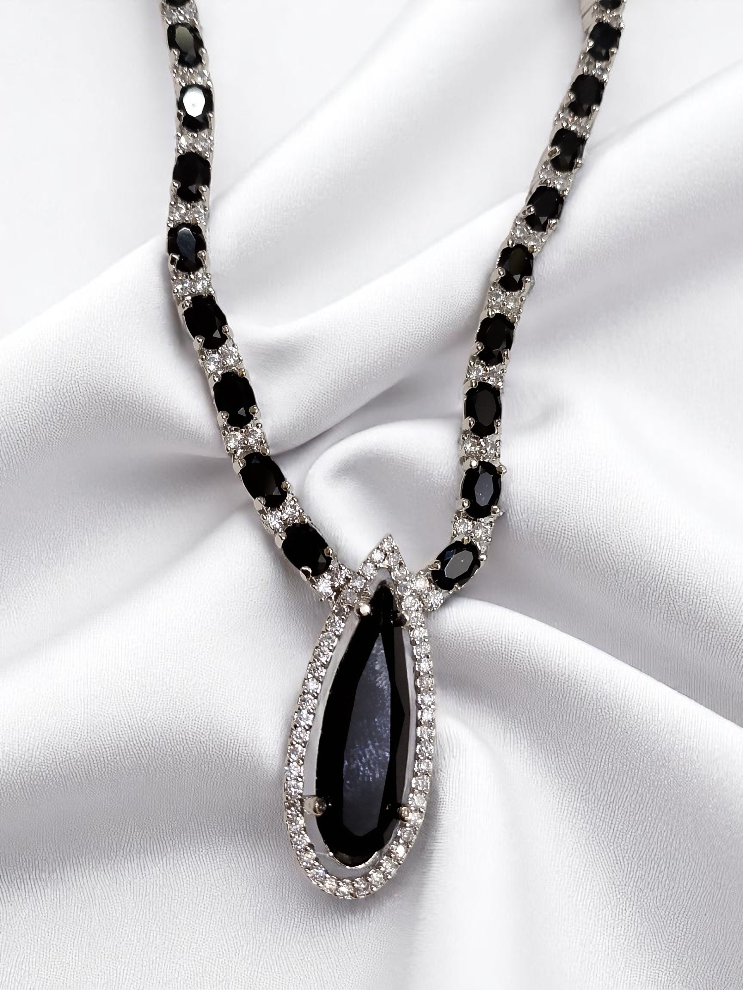 💎 Striking Design – The necklace features a teardrop pendant accented with a series of finely cut stones, creating a statement of understated luxury.