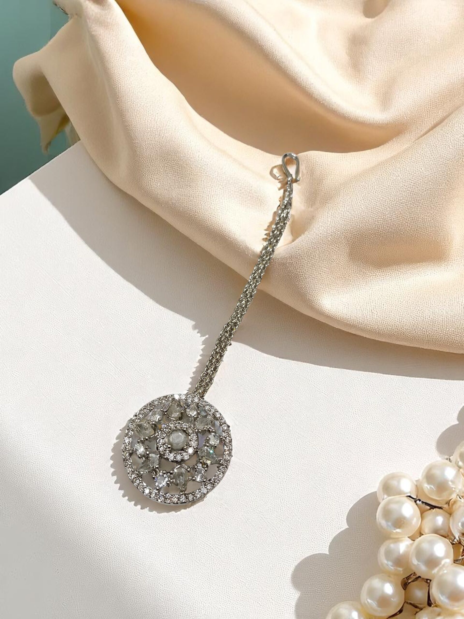 Elegant Silver-Toned Maang Tikka with Stone Detailing