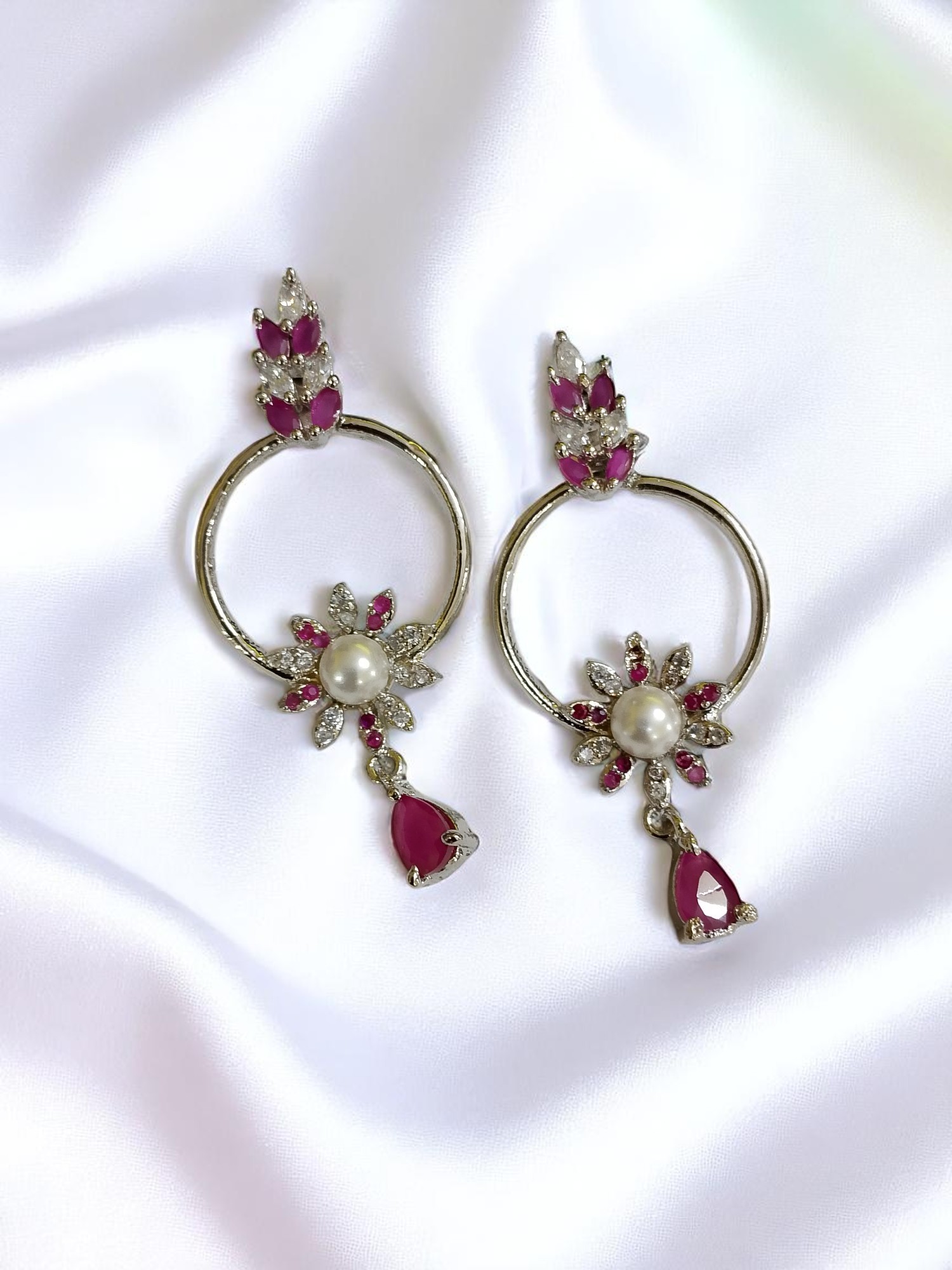 Gold Plated Pink Ad Stone Earrings with Pearl