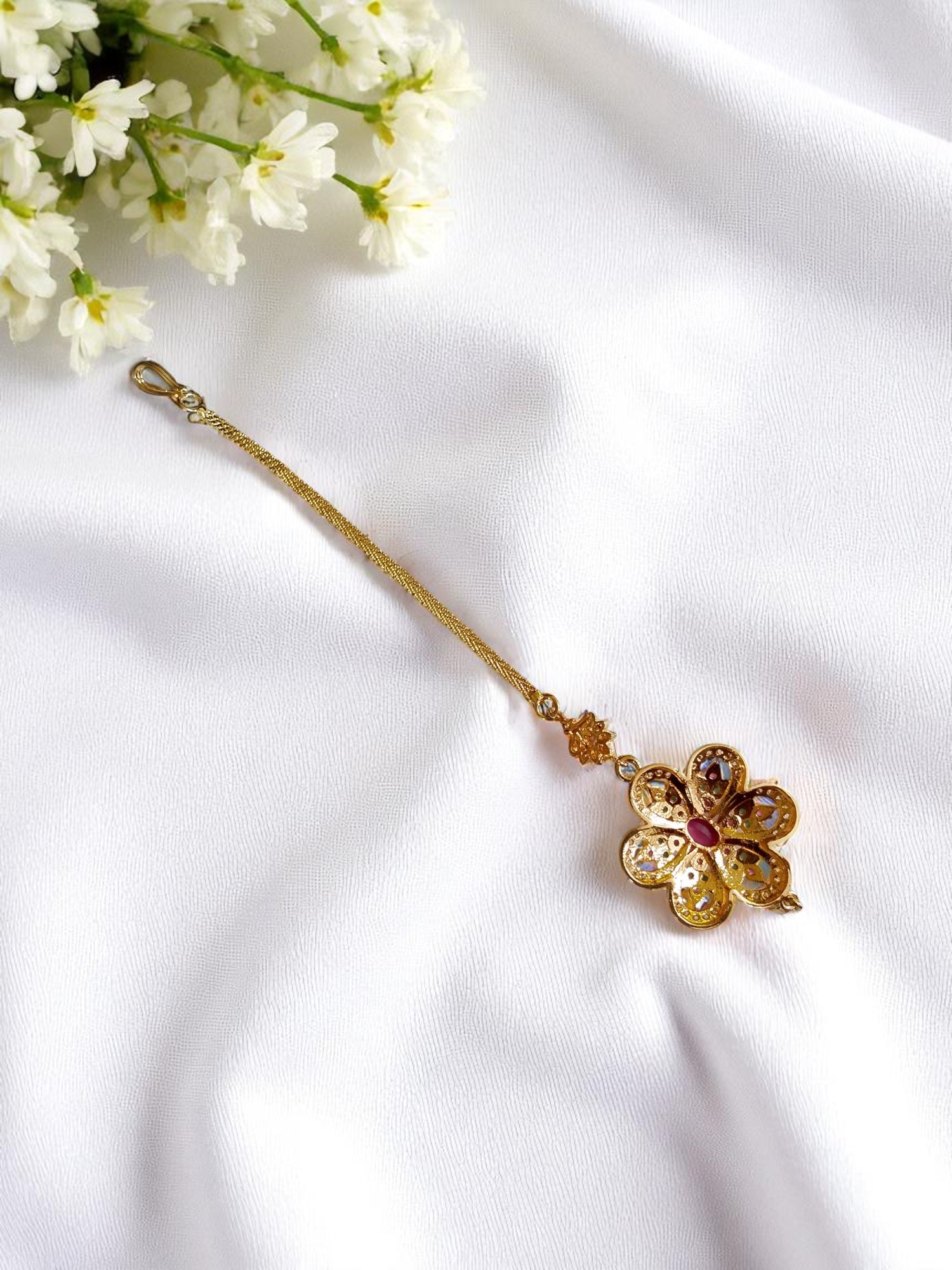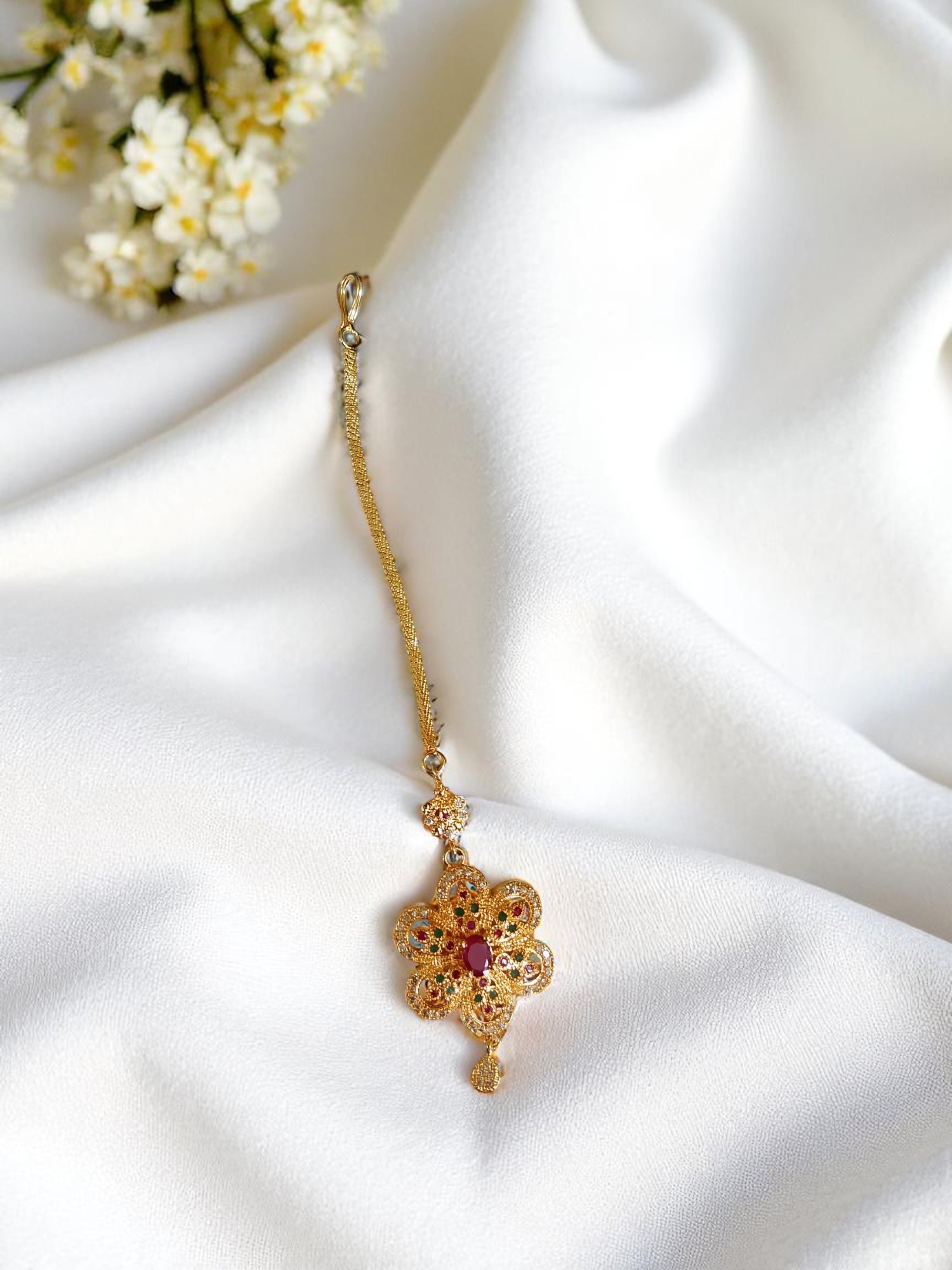 Traditional Golden Floral Maangtikka with Multicolor Stones