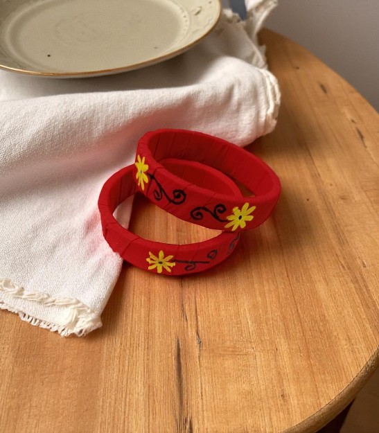 Graceful Hand-Printed Fabric Bangle (1Pair)