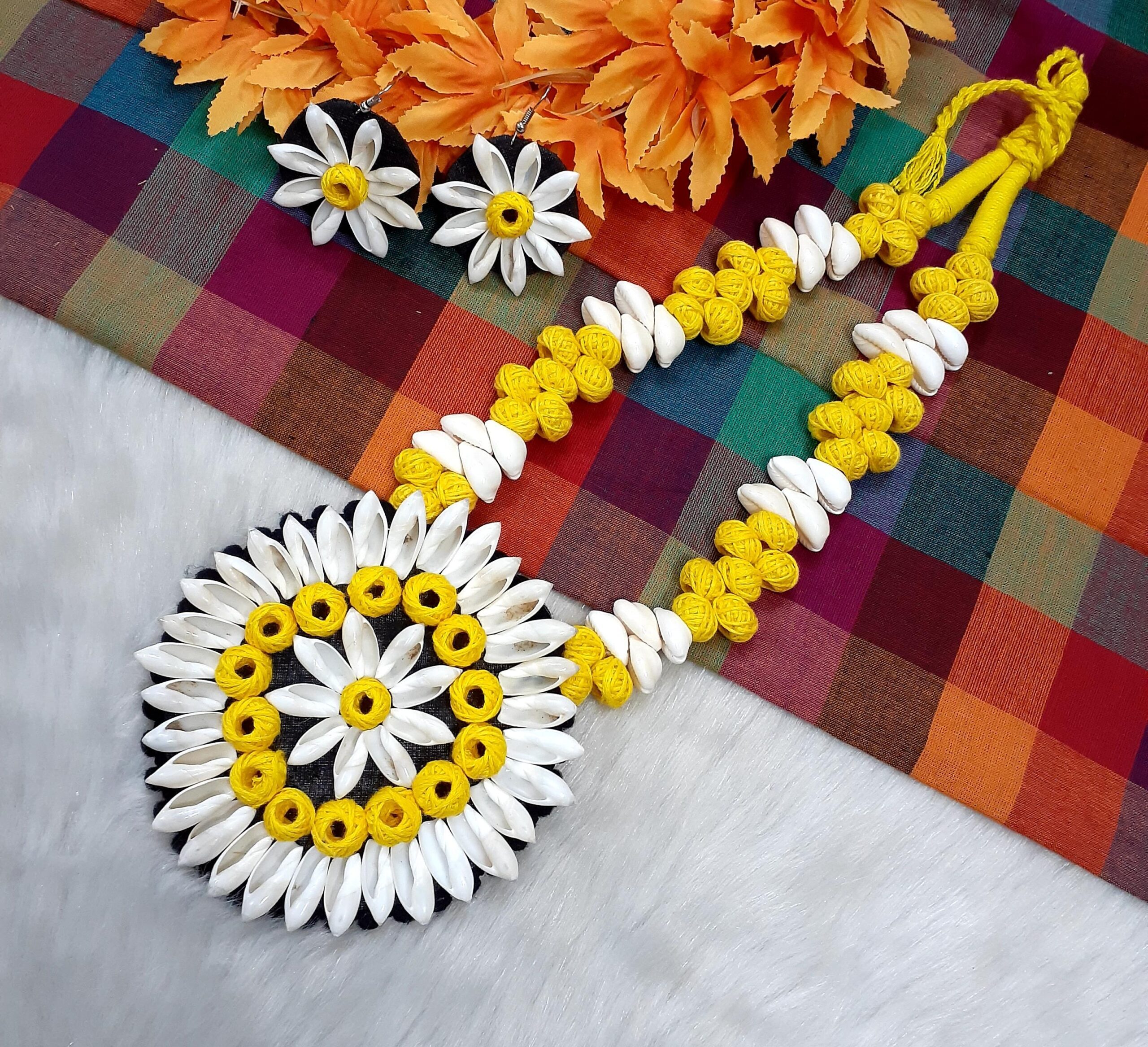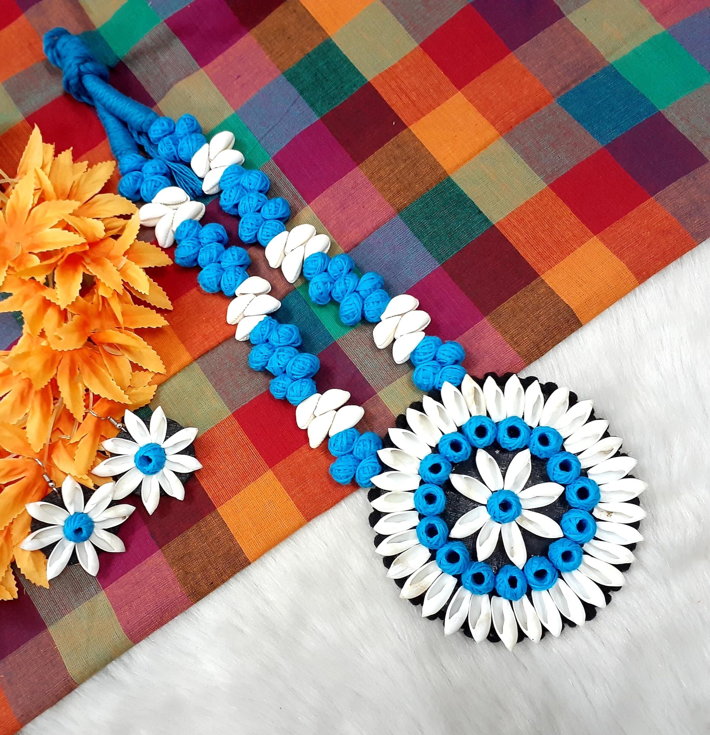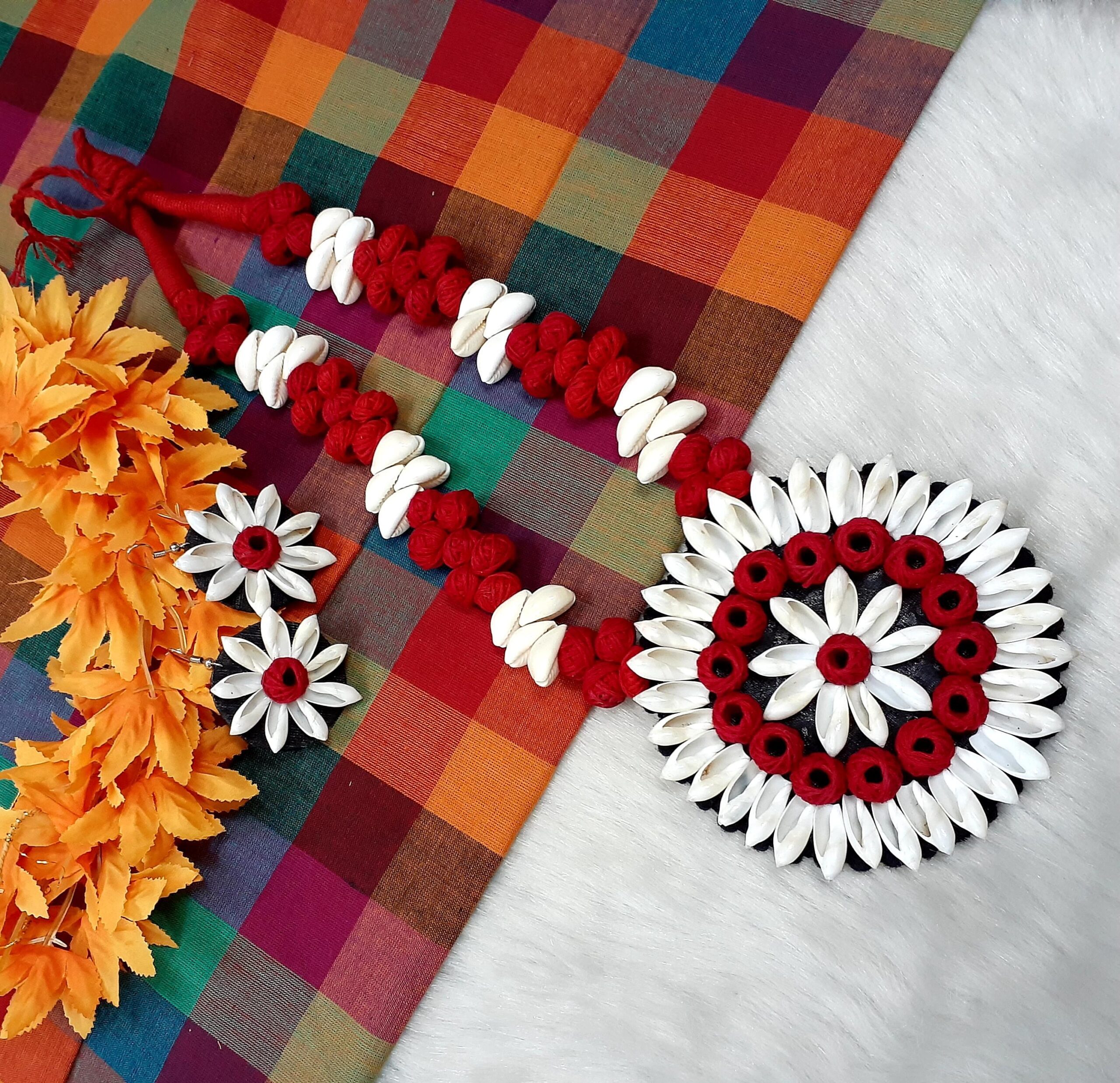 Hand-Crafted Natural Sea Shell & Cotton Ball Necklace Set