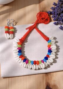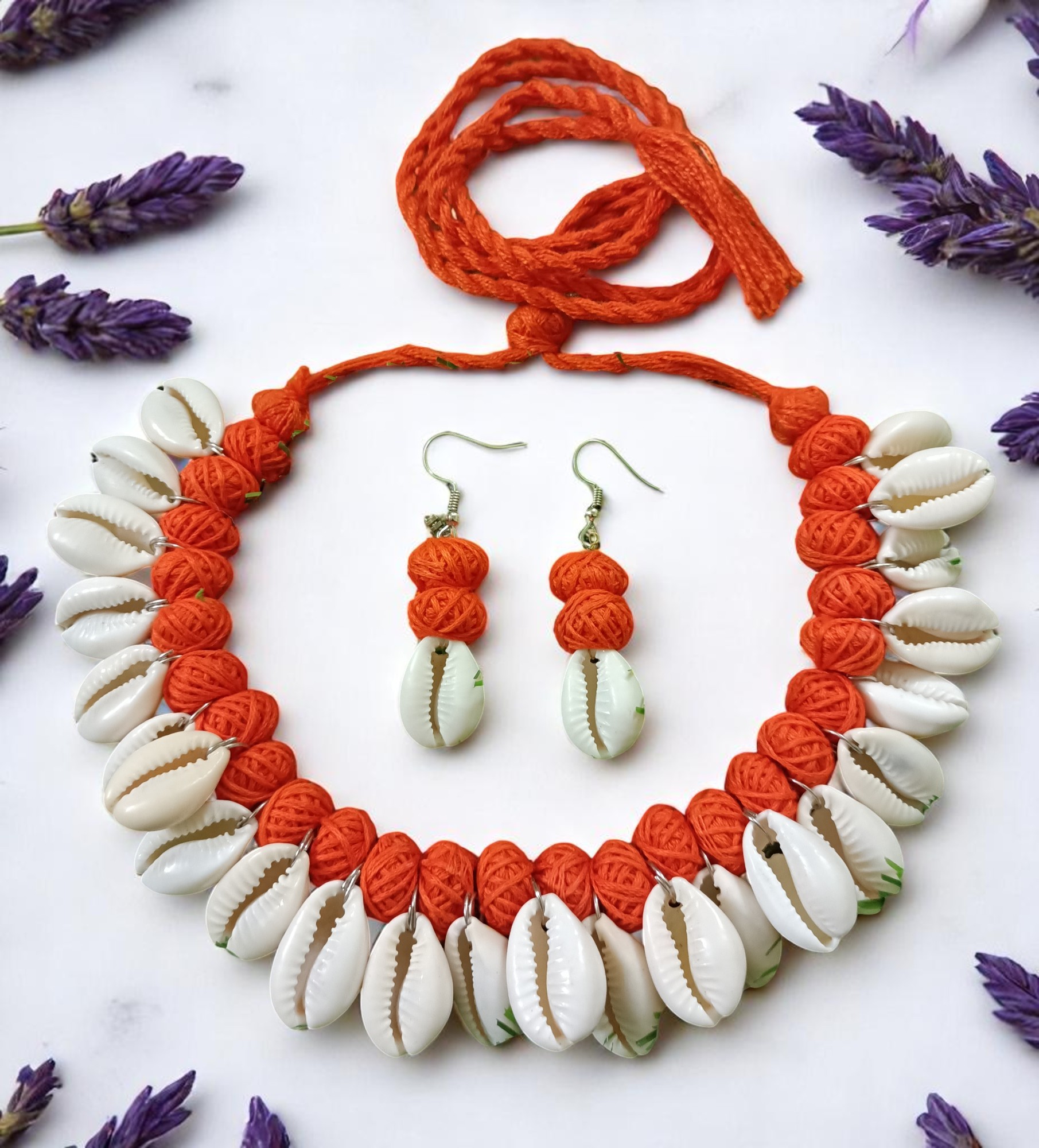 Hand-Crafted Natural Sea Shell Cotton Balls Necklace Set