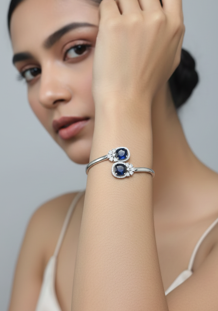 The bracelet features premium American diamonds that reflect light beautifully, giving a sophisticated sparkle suitable for both special occasions and daily wear. Its sleek and adjustable design ensures a comfortable fit while enhancing the grace of your wrist effortlessly.