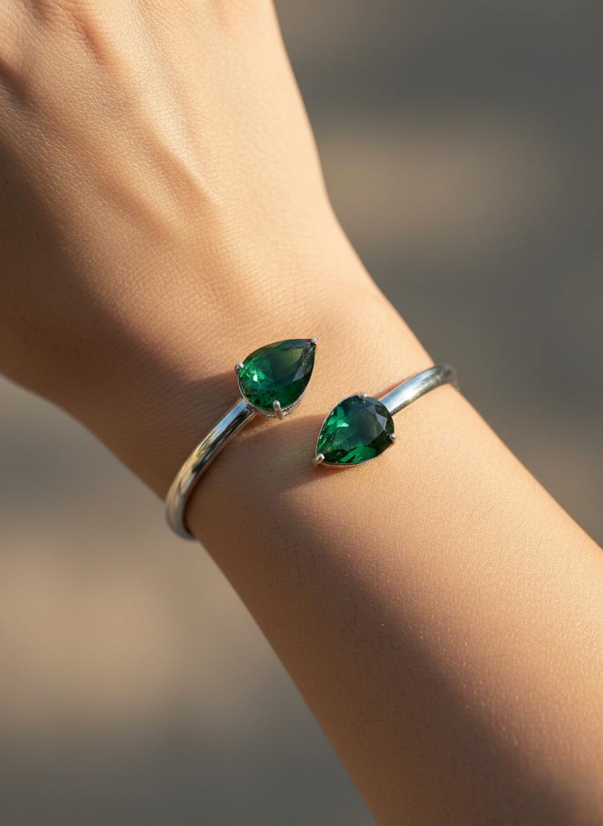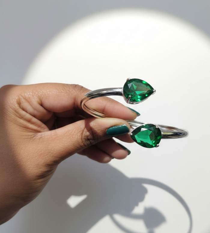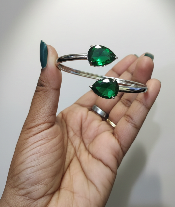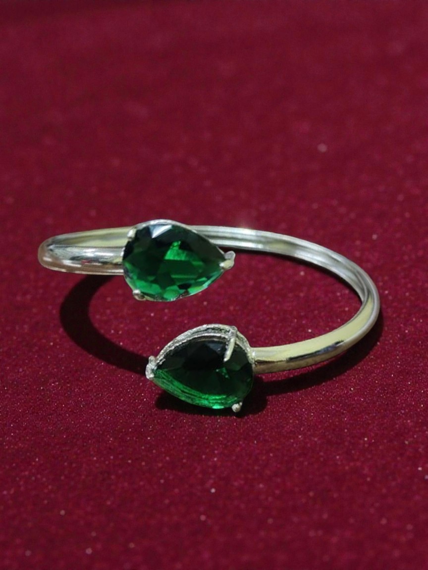 Jewel Wala Elegant Green AD Stone Rhodium Plated Bracelet