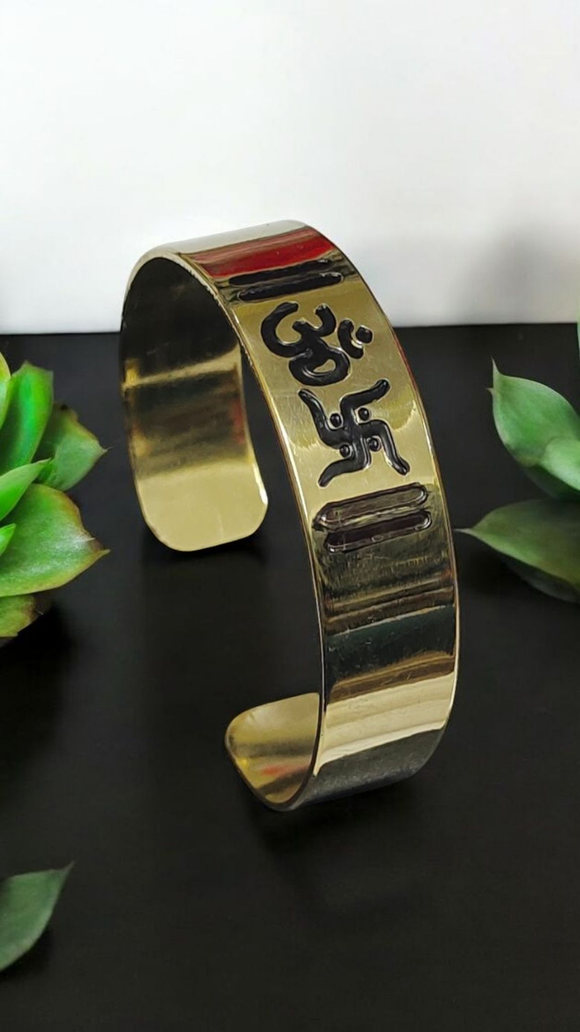 Premium Brass Construction: Crafted from high-quality polished brass, this cuff bracelet offers durability with a refined, radiant finish—perfect for everyday wear or spiritual occasions.