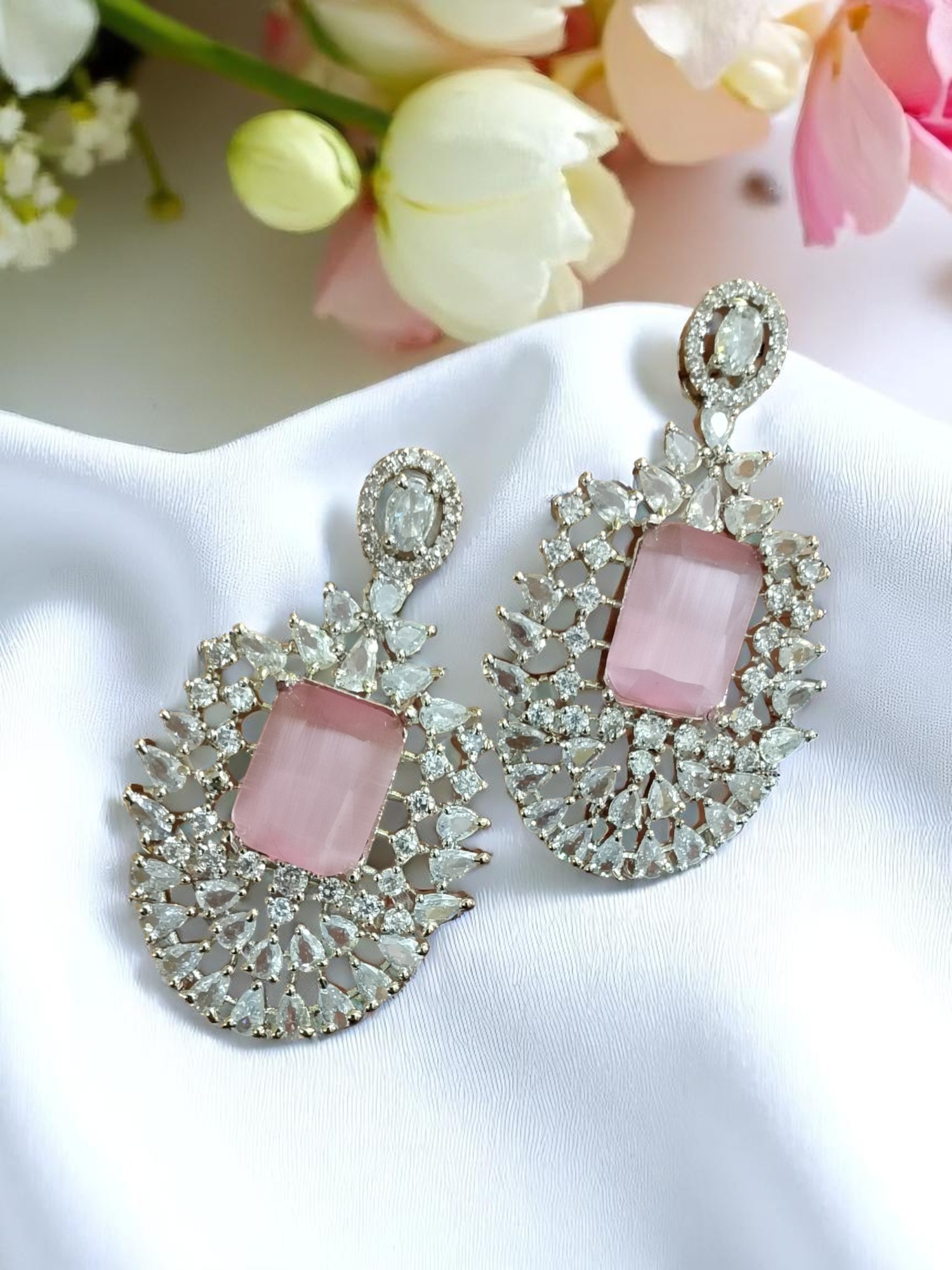 Pink Ad Stone Earring Pair