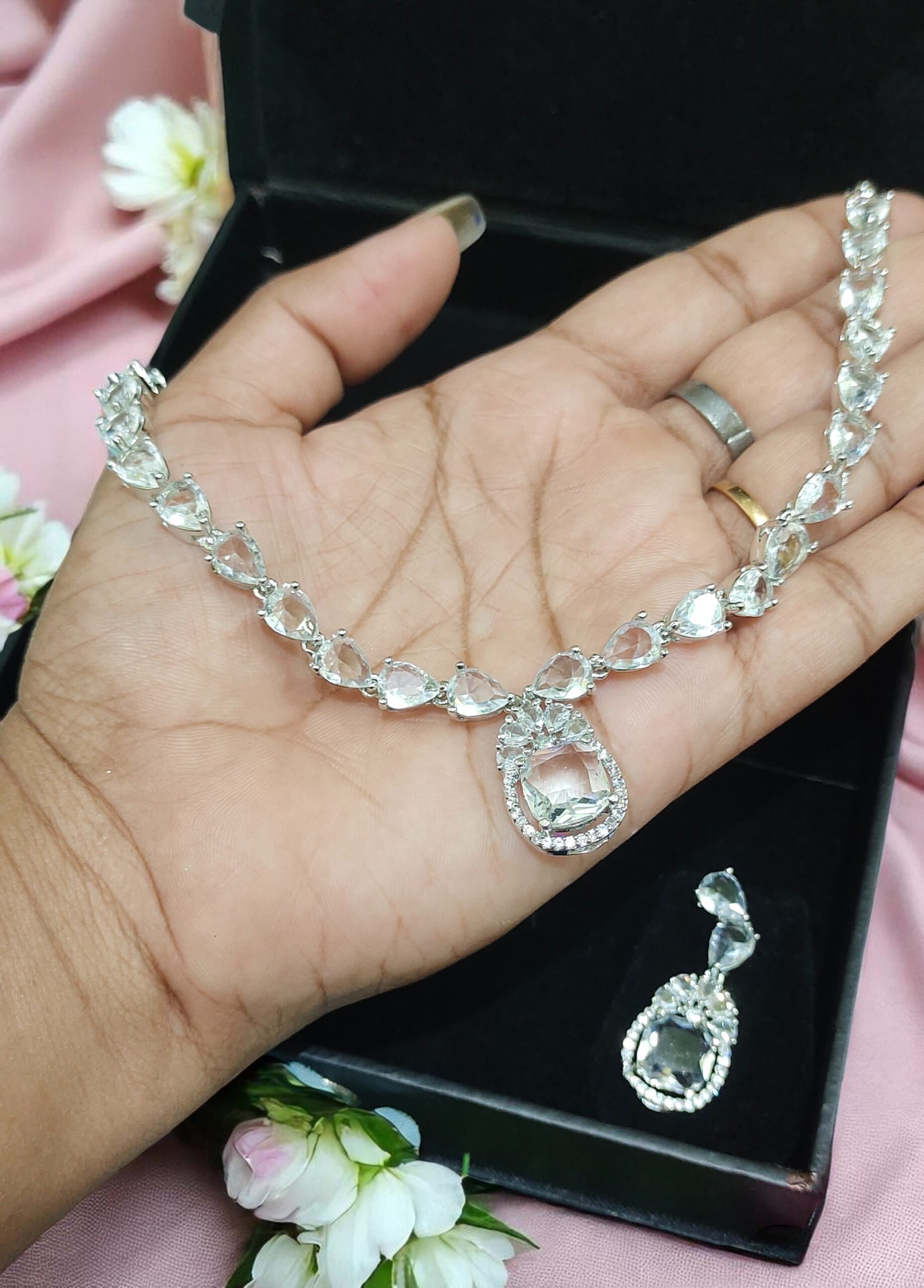Radiant White American Diamond Necklace Set