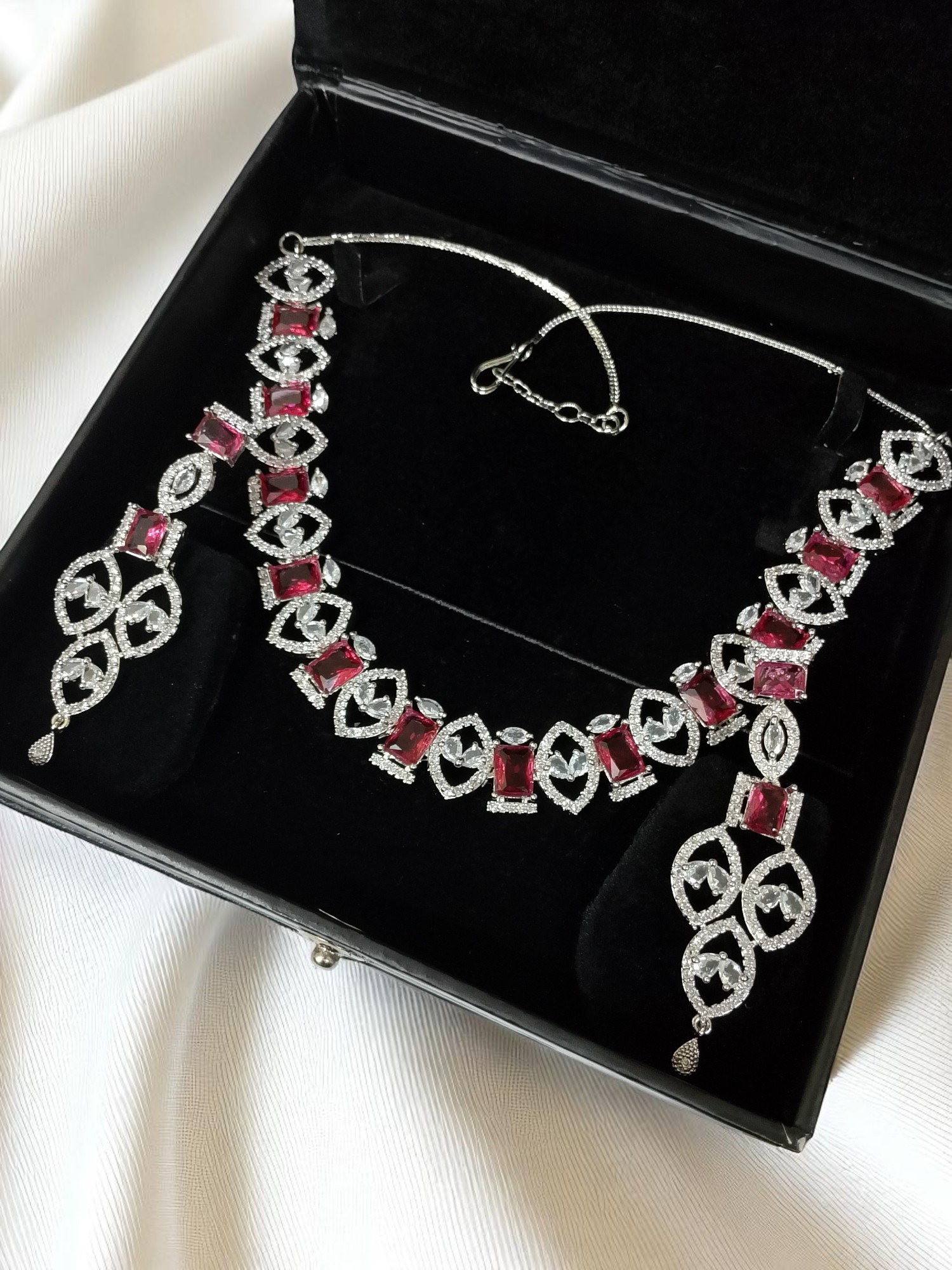 Be the first to review “Red AD Stone Necklace With Earring Set” Cancel reply