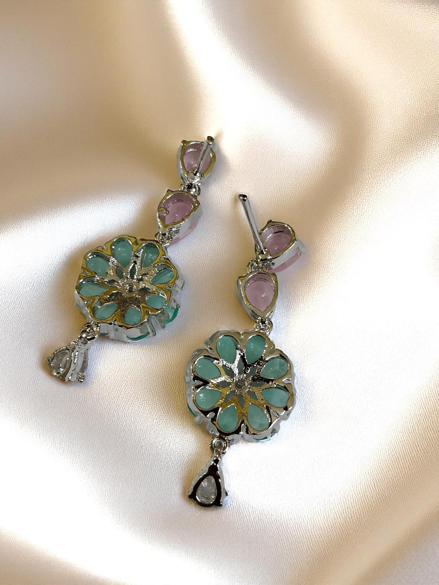 Sky & Pink Dual Color Flower Stone Earring Pair